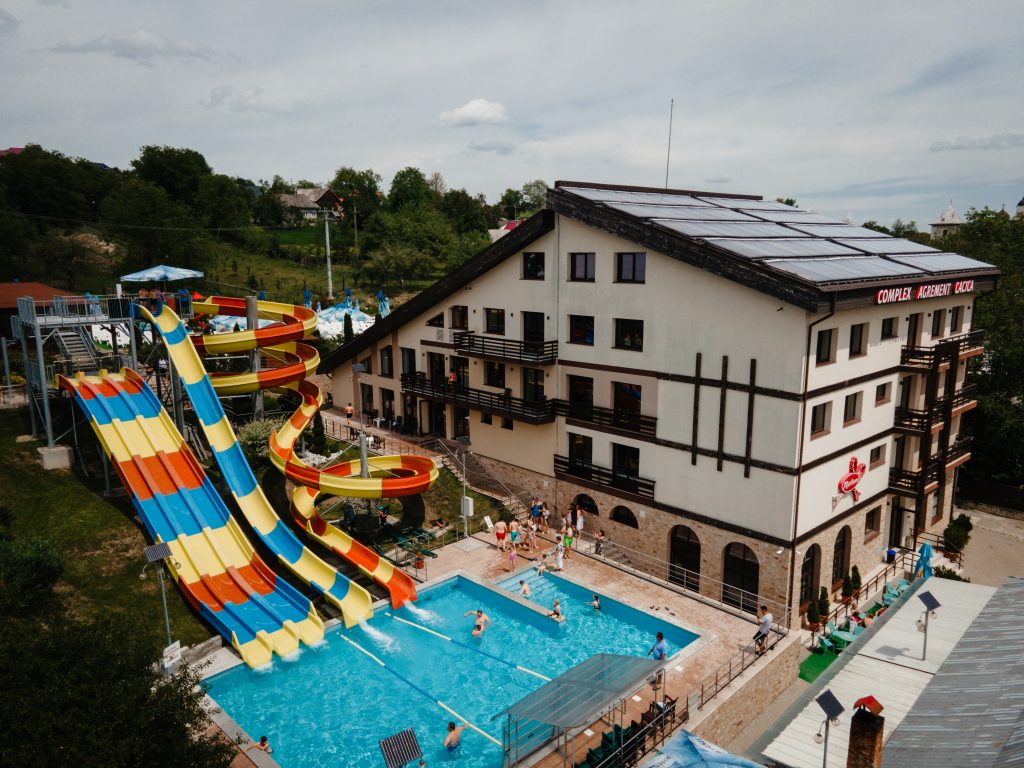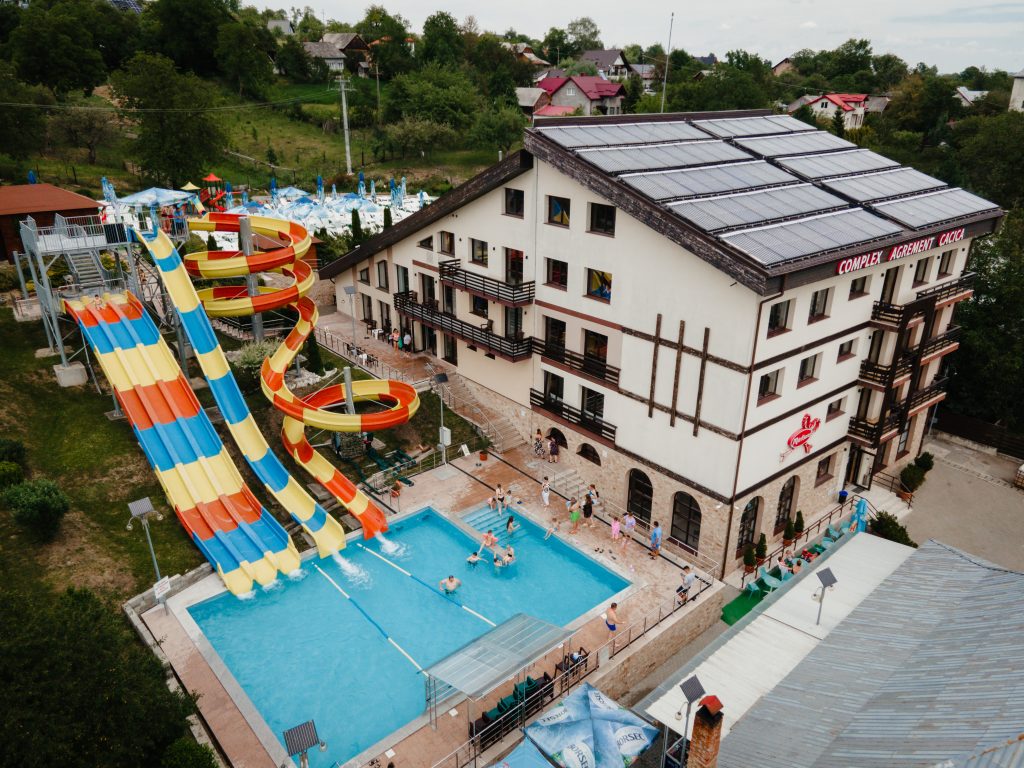 Ai venit să te relaxezi împreună cu copiii?! Nici o problemă! Complex Agrement Cacica Complex Agrement Cacica a amenajat spatii speciale pentru copii de toate varstele atat in interior cat si la exterior. Sigur veţi vrea sa retraiţi copilăria alături de ei pe toboganele cu apă din Aqua Park sau construind castele de nisip pe plajă.